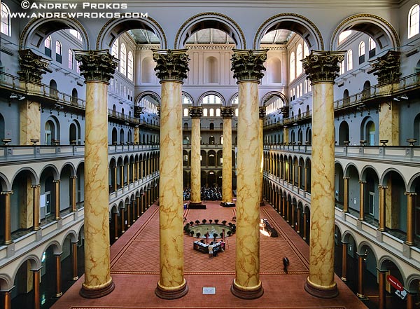This time, we went to the National Building Museum, a beautiful building used for Presidential Inaugural Balls. There were columns so wide that Orville and I, holding hands, could only span a third or a fourth of their circumference. There were some interesting exhibits, including one of Lego buildings that was amazing. The Lego Falling Water was terrific!